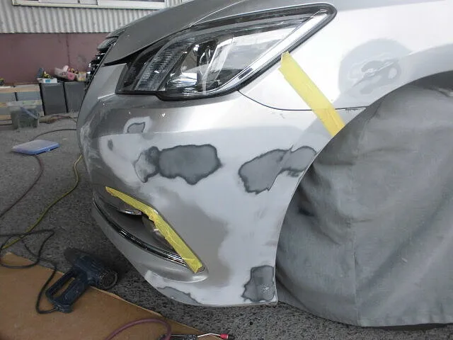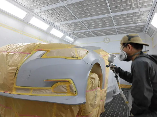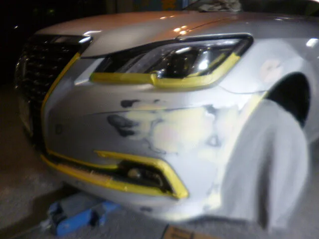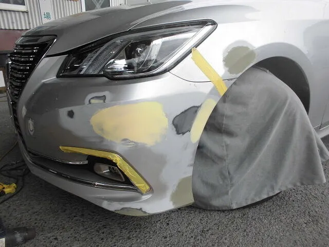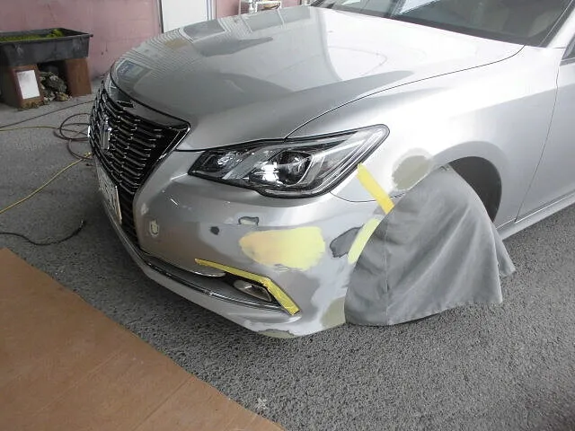 富士市 富士市 鈑金塗装 クラウン フロントバンパーカバー、左フロントフェンダー塗装修理 望月塗装工業所