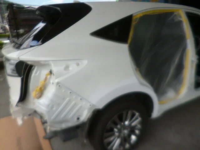 お客様からご依頼いただいたハリアーの右側面修理では、まず損傷箇所を丁寧に確認し、