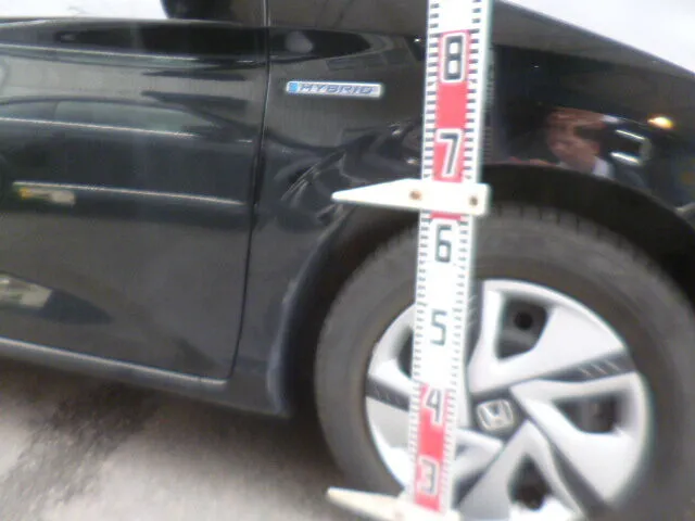 スタッフはすぐに現状を確認し、専用の測定器具で損傷箇所を丁寧にチェック。
