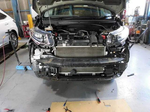お客様からお預かりしたフリードの修理では、まず状態確認から始まりました。