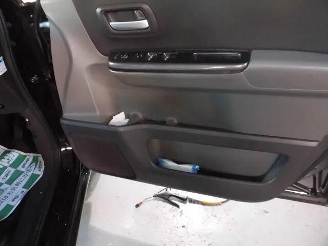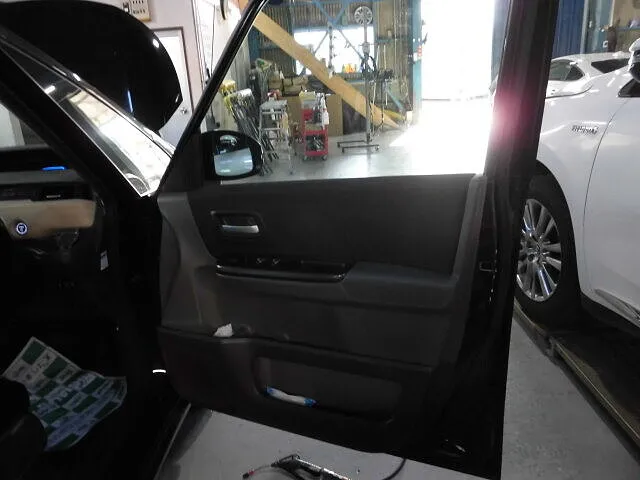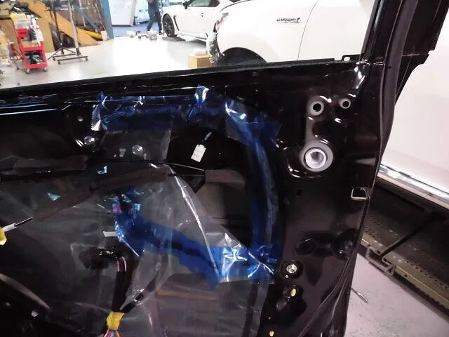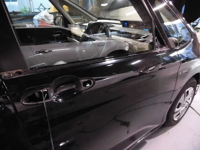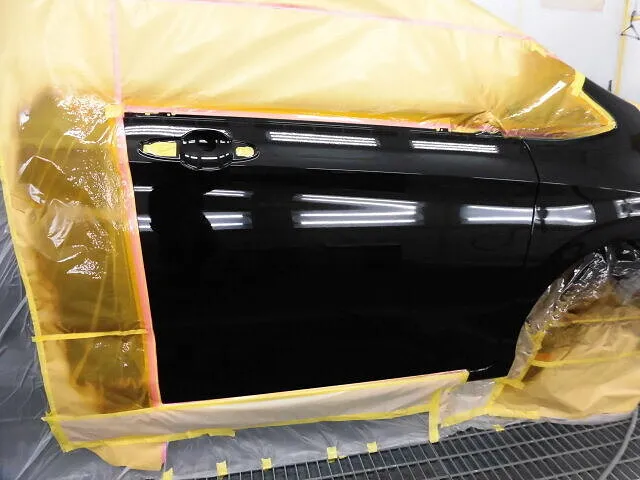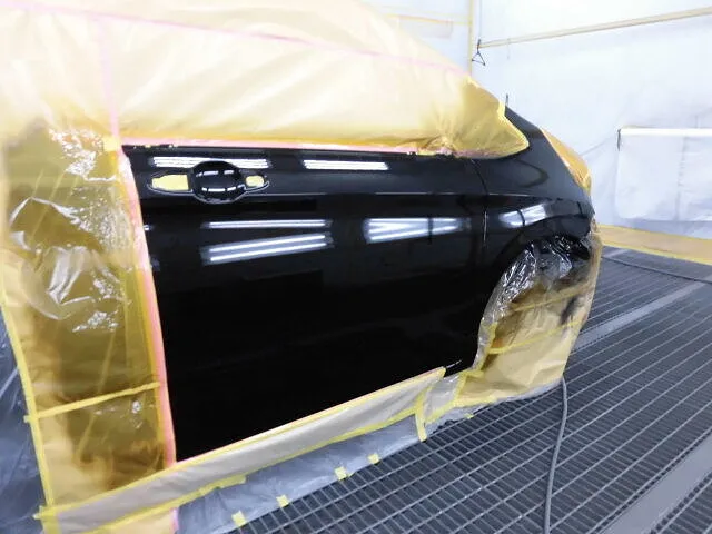 塗装ブースの中で、職人が丁寧に仕上げたばかりのフリードのドア。