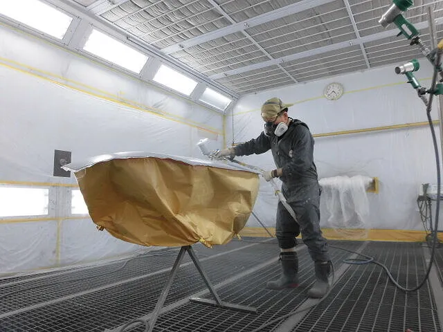 塗装ブース内では温度や湿度にも気を配りながら、美しい発色になるまで何度も確認。