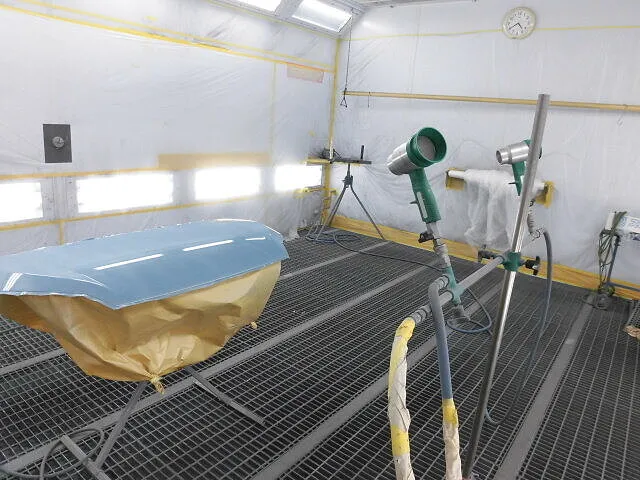 鈑金塗装の現場では、最新の設備と職人技が組み合わさり、