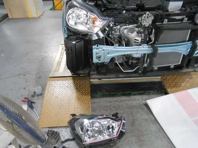 お客様から預かった大切なミライースも、こうして新しい部品と向き合いながら