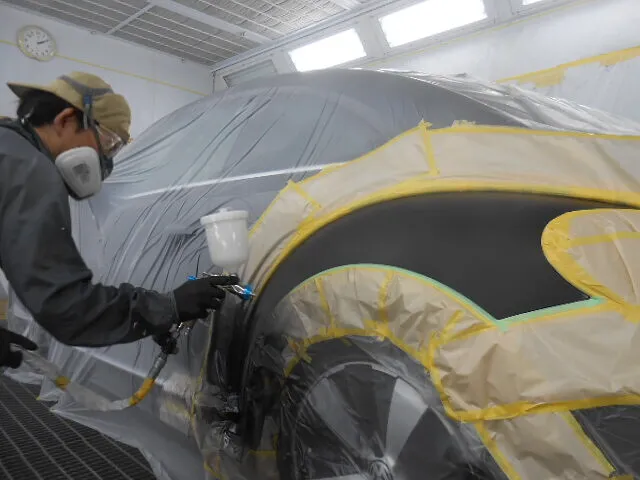 塗装ブース内では、埃やゴミが入らないよう細心の注意を払いながら、色合わせにもこだわっています。