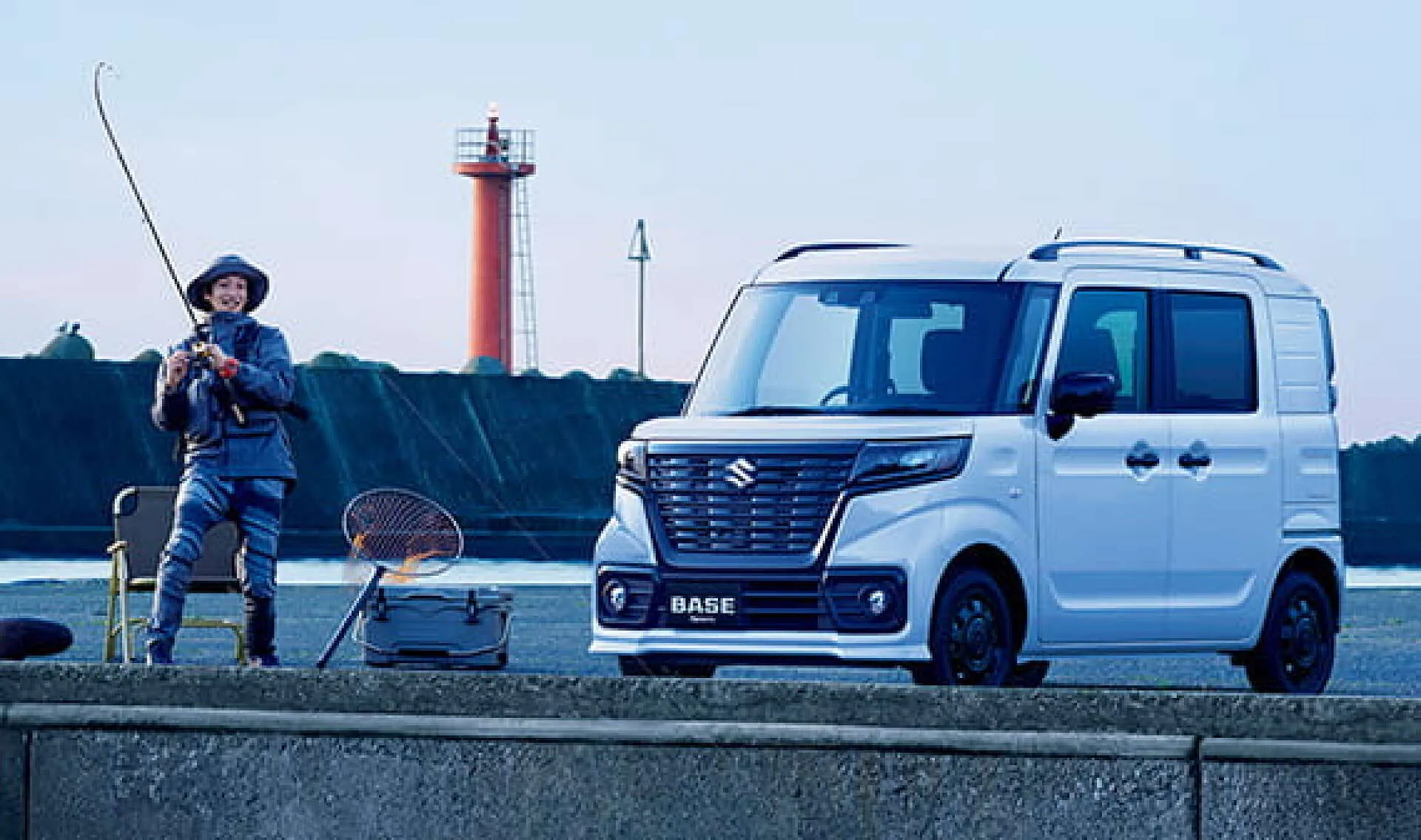 釣り竿を手にしたお客様が、海辺でゆったりと過ごす様子が印象的な一枚です。そばには新しいスズキ スペーシアベースが停まっていて、アウトアの相棒として活躍していることが伝わります。休日の朝、静岡県富士市の港で気軽に趣味を楽しめるのも、この車ならではの使い勝手のおかげです。