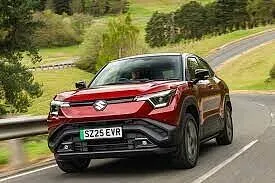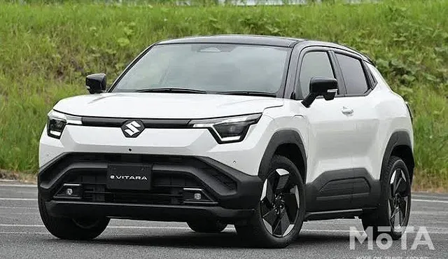 青空の下、スズキの新しいSUVが颯爽と走り抜ける姿は、日常にちょっとしたワクワクをもたらしてくれます。