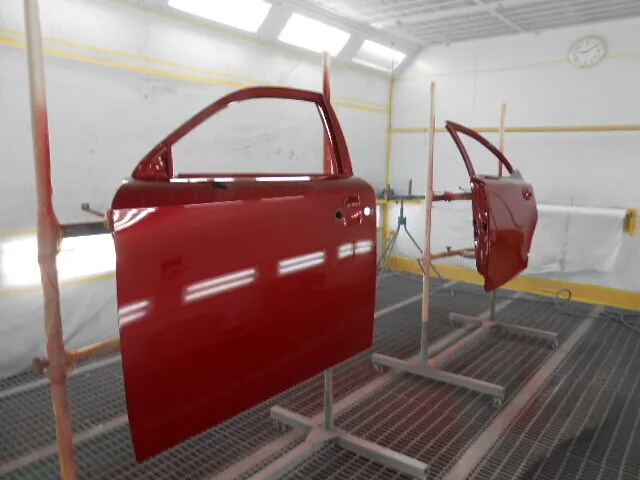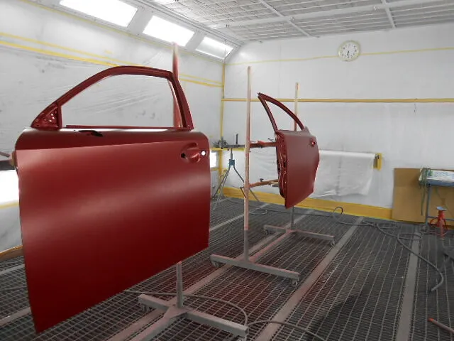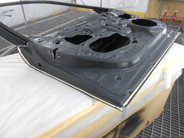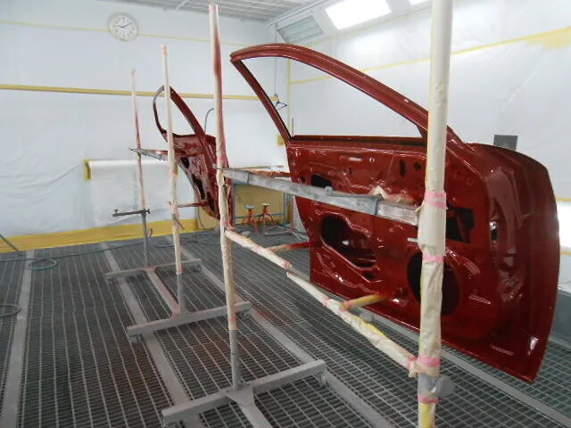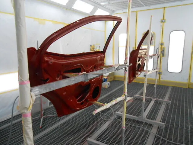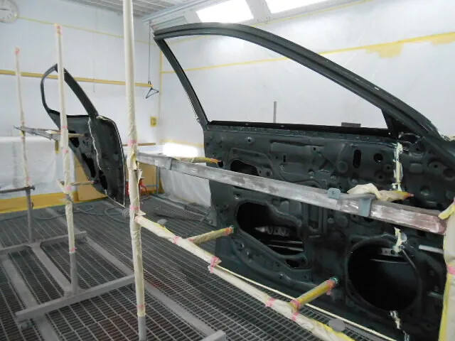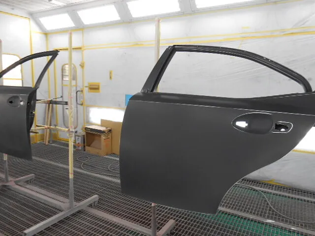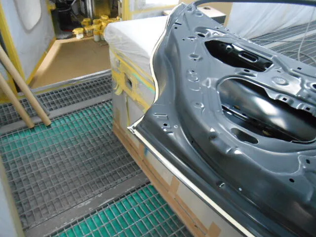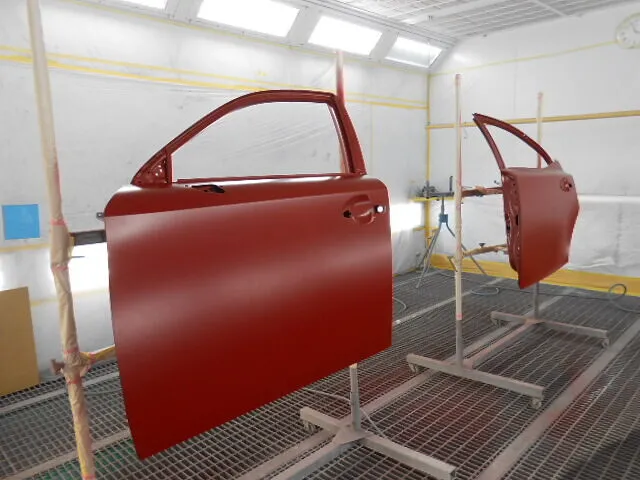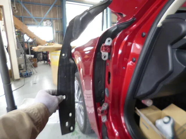 お客様から「左側面のキズやへこみが気になる」とご相談いただき、今回はフロントドアとリヤドアの交換、そして丁寧な塗装修理を進めています。