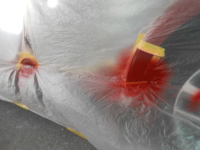 これから左側面塗装修理が始まるところです。