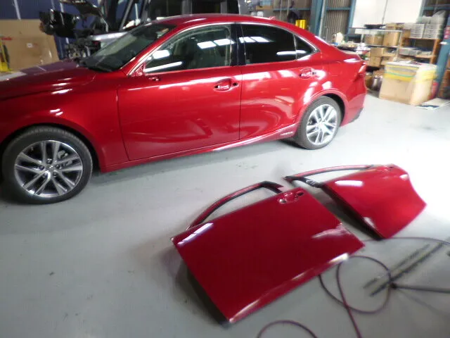 富士市 富士市 鈑金塗装 レクサス 左フロントドア、リヤドア交換、左側面塗装修理 望月塗装工業所