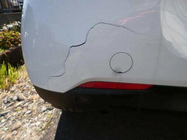朝の出勤前、ふとリヤバンパーに目をやると、見覚えのないキズが。