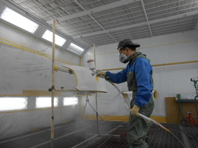 ムラなく均一な仕上がりを目指して塗装作業が進められています。