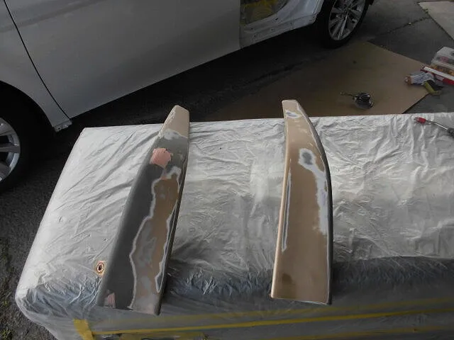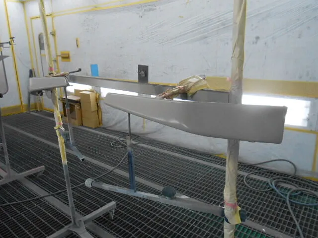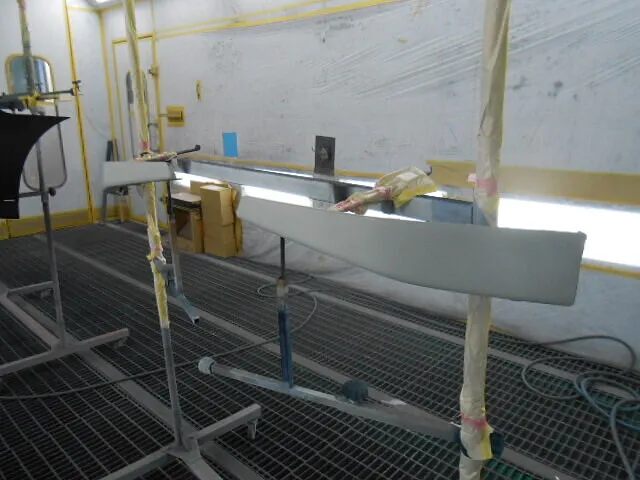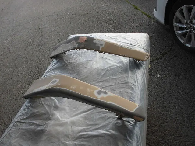 お預かりした車両のスポイラー塗装修理や交換作業に取り組んでいます。