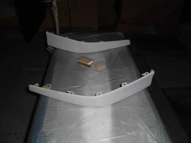 作業場に並ぶフロントバンパー、その静かな存在感が印象的です。