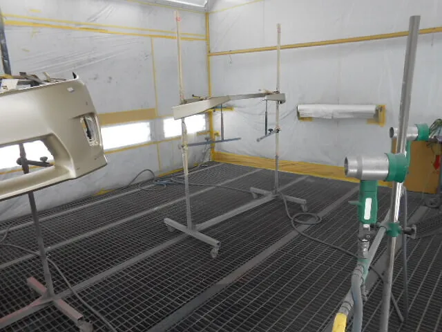 画像のように専用ブースでしっかりと養生しながら、塗装修理や交換作業を進めていきますので、ご安心いただけます。