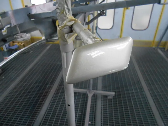 大切にしながら、塗装ブースで慎重にスプレーガンを動かしています。