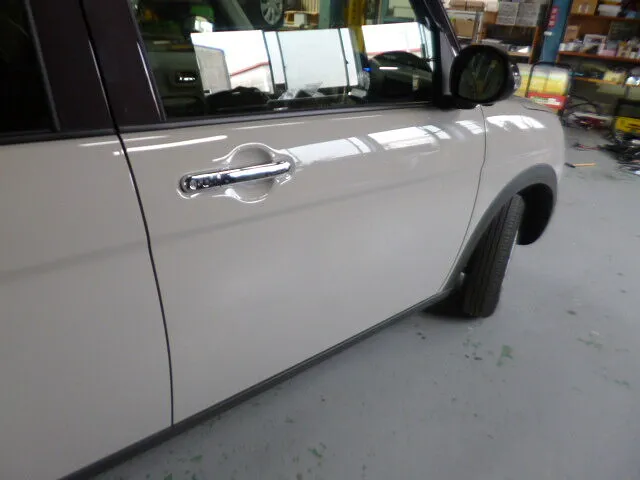 ラパンの右フロントドアが、まるで新車のような輝きを取り戻しています。