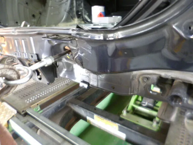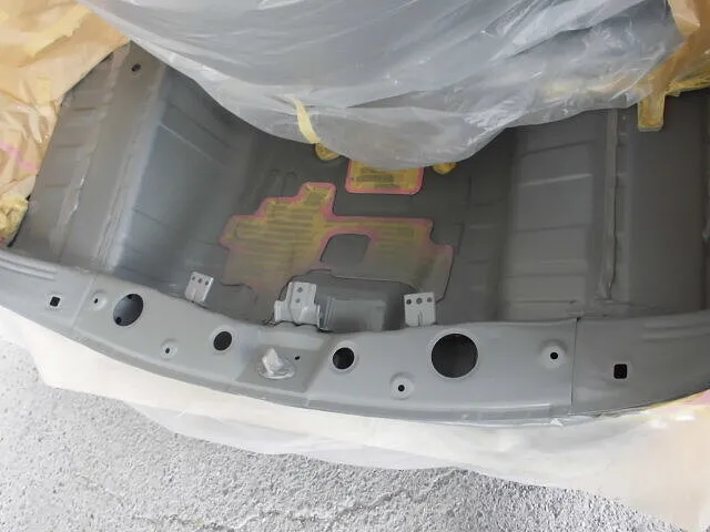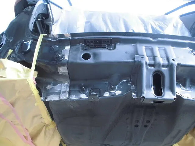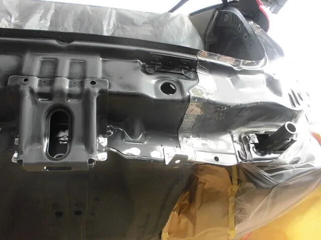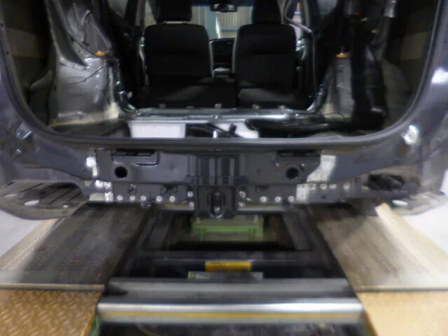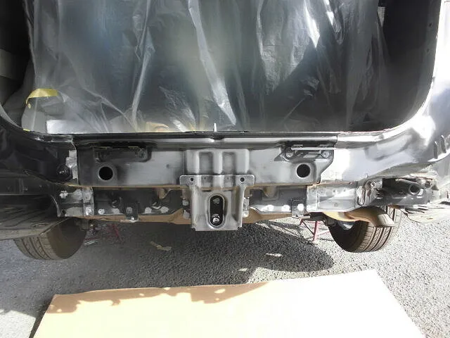 富士市 鈑金塗装 スズキ スペーシア リヤバンパー、バックパネル交換 リヤフロアパン鈑金塗装修理