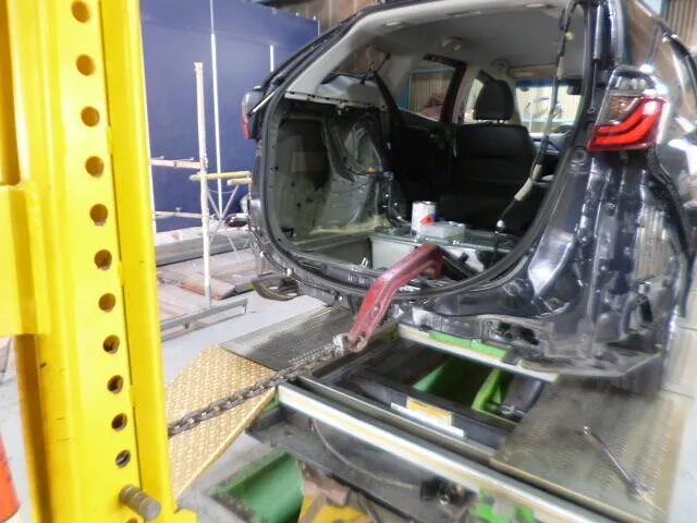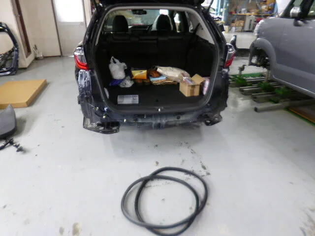 普段は家族や荷物を乗せて走る車も、こうしてバックドアやリヤバンパーなどの修理時には