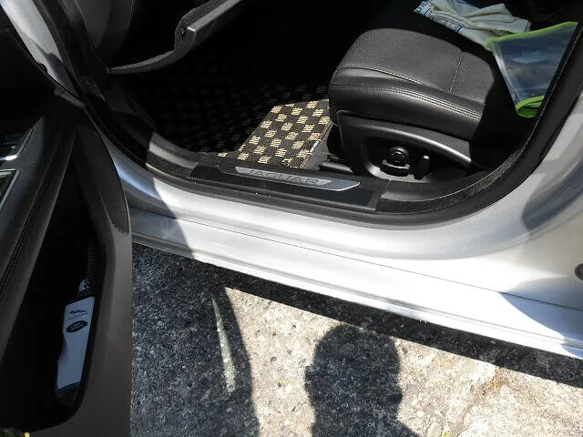 富士市 富士市 鈑金塗装 ジャガー 左フロントドア交換、リヤドア鈑金塗装、サイドスポイラー交換塗装修理 望月塗装工業所