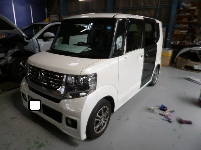 富士市 鈑金塗装 N-BOXの右側面修理、スライドドア交換