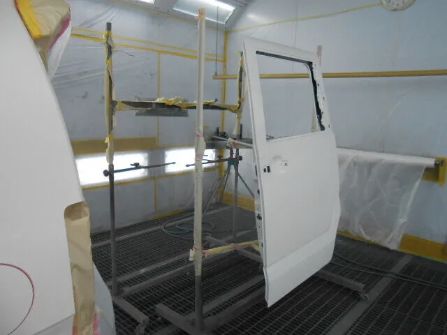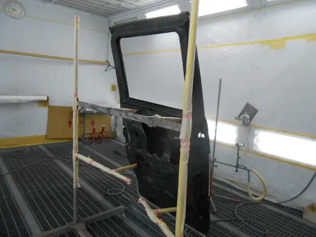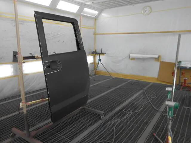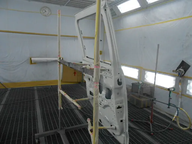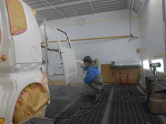 工場の一角で、職人が黙々と作業を進める様子が伝わってくるこの塗装ブース。