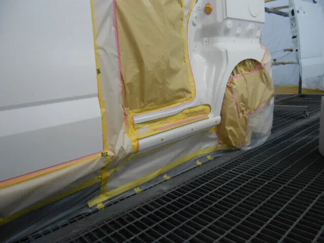 細部までマスキングされた車体や、専用ブース内で集中して進める工程は、