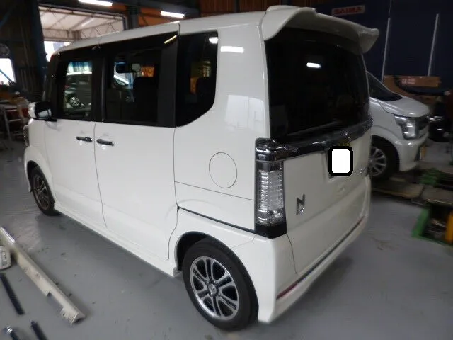 富士市 鈑金塗装 ホンダ N BOX リヤバンパ、バックドア交換 リヤパネル鈑金塗装