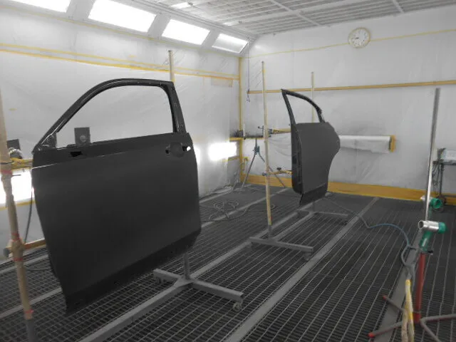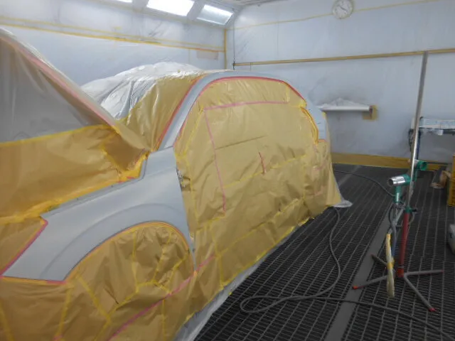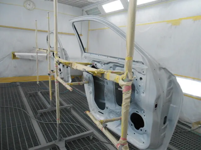 専門スタッフが専用ブースで慎重に塗装工程を進めています。