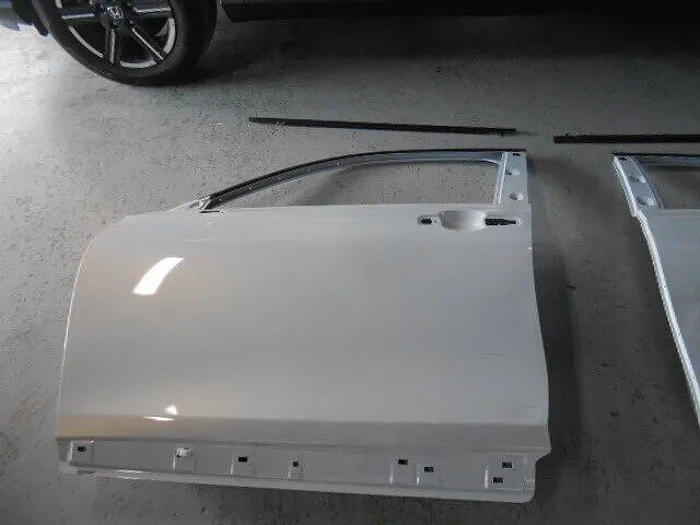 工場の一角で、ドアパネルが丁寧に準備されています。