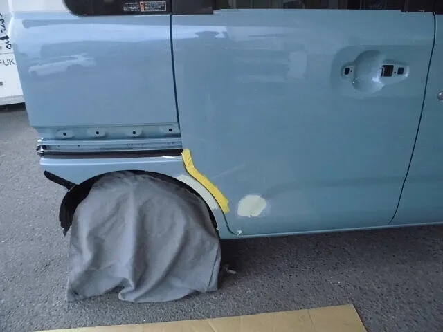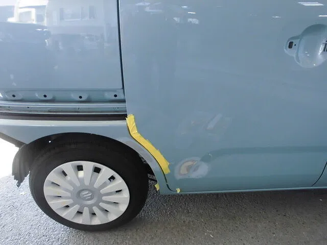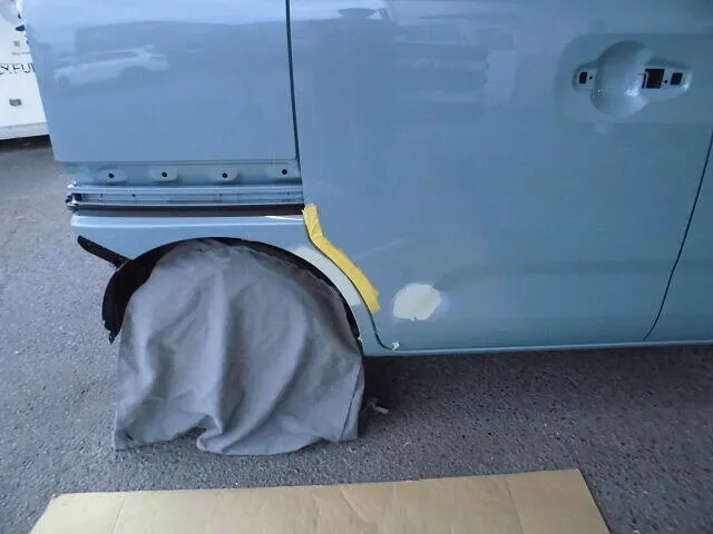 富士市 鈑金塗装 スペーシアギアの左右リヤフェンダー部分塗装
