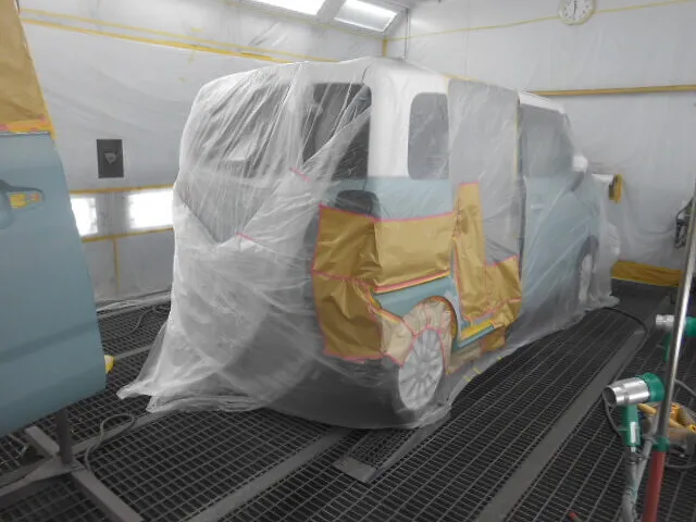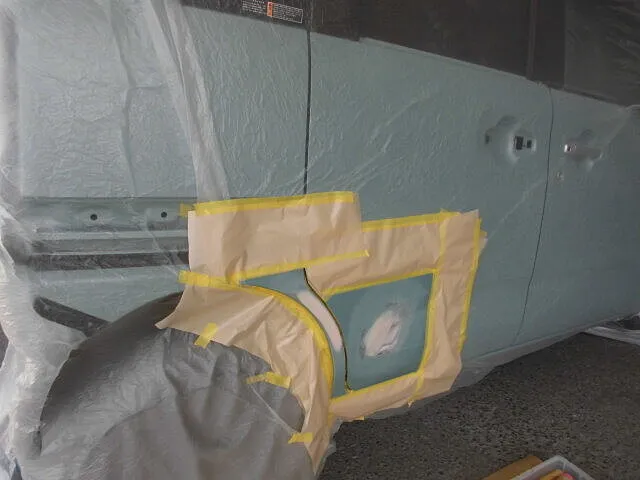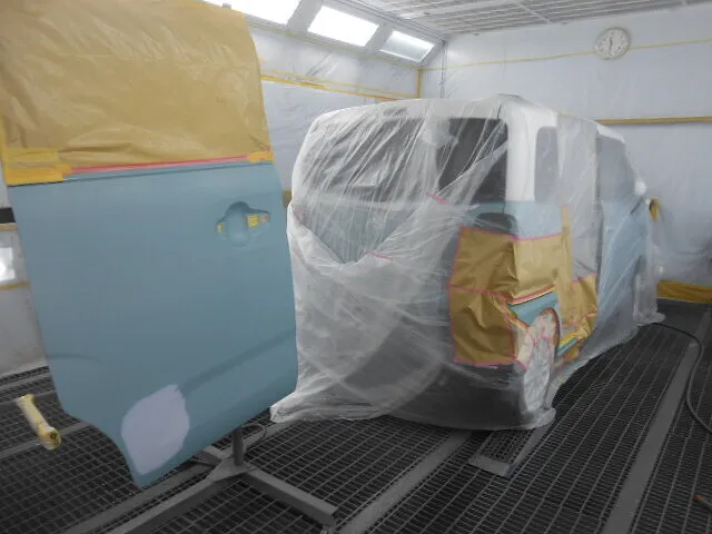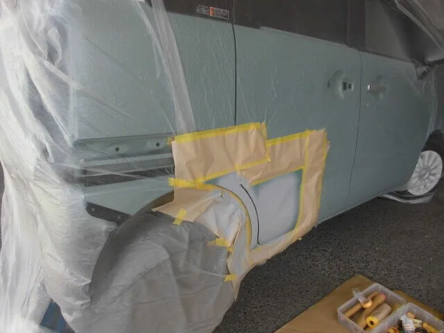 最適な方法で作業を進めています。今回は右側のスライドドアとリヤクォーター部分。