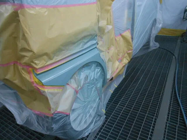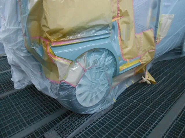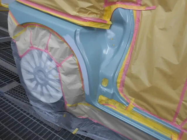 しっかりと養生されたボディを見ると、これから新しい色が吹き付けられ、