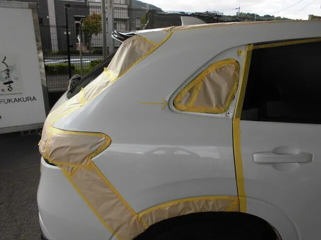 富士市 鈑金塗装 ヤリスクロス 左リヤフェンダー鈑金塗装