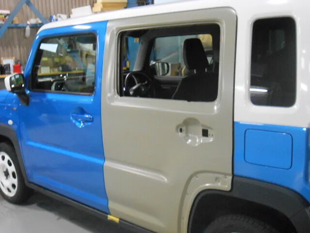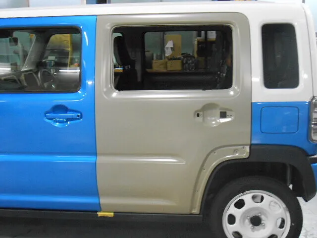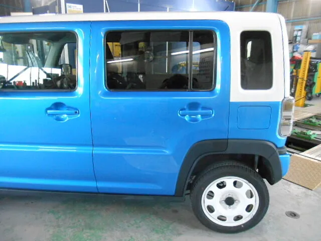 富士市 鈑金塗装 スズキ ハスラー 左リヤドア交換塗装修理