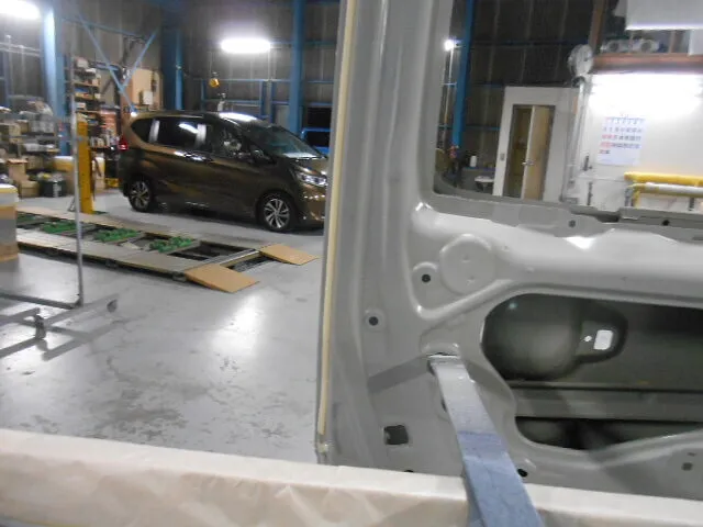 富士市 鈑金塗装 フリード 左スライドドア、左ロッカパネル、左リヤフェンダー鈑金塗装