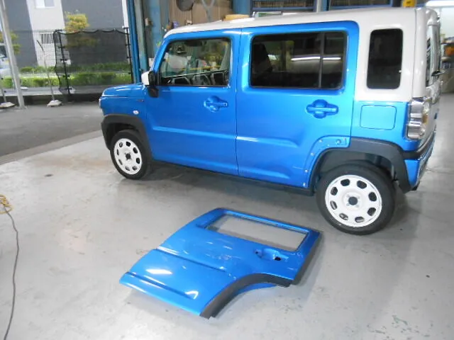 富士市 鈑金塗装 ハスラー 左リヤドア交換修理