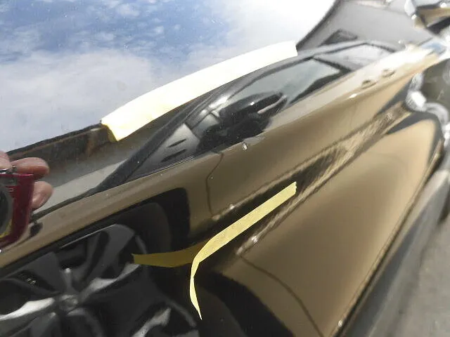 この写真は、富士市で実際にご依頼いただいた修理現場の一コマです。オーナー様から「左フロントドアのキズが目立ってきて…」とご相談いただきました。