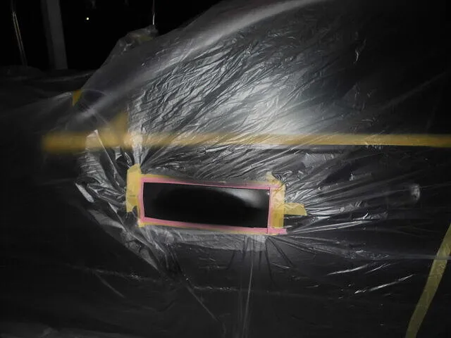 富士市 鈑金塗装 ベゼル 左リヤドア凹み塗装修理