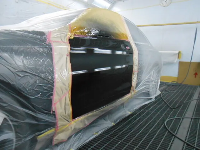 こうして選ばれた色が、お客様のお車へと吹き付けられる瞬間には、