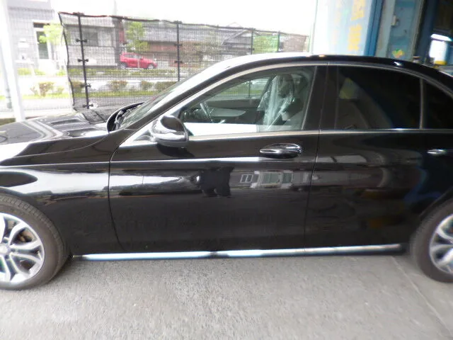 富士市 鈑金塗装 ベンツC200 Fバンパ、右Rドア、右サイドスポイラー交換、右Fドア鈑金塗装修理