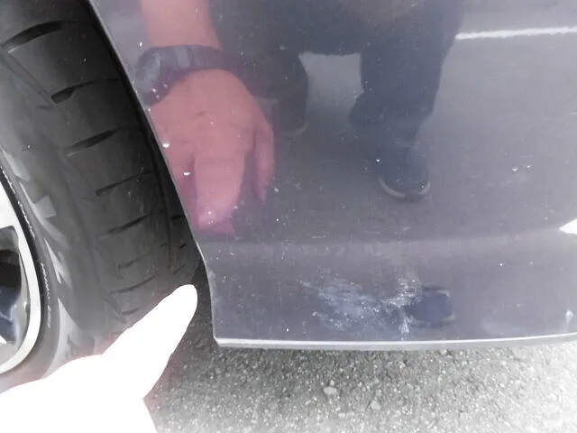 富士市 鈑金塗装 ベンツSL350 見後リヤフェンダーキズ塗装修理