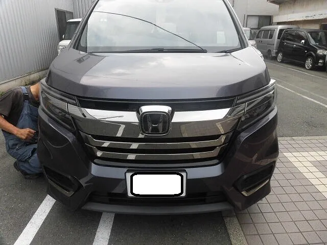 富士市 富士市 鈑金塗装 ホンダ ステップワゴン フロントバンパー交換右フロントフェンダー鈑金塗装、サスペンション修理 望月塗装工業所