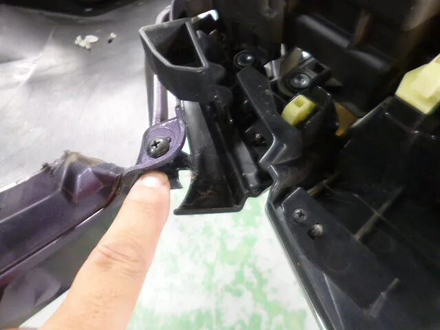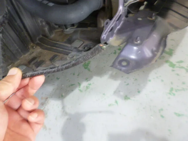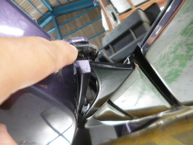 作業の合間にふと手を止めて、フロントバンパーの取り外し工程を