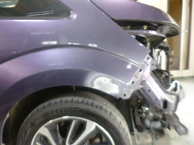 富士市 鈑金塗装 アクア 左フロントフェンダー交換修理