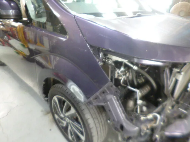 富士市 鈑金塗装 NBOX Fバンパ、フード右Fフェンダー交換、フロントサイドフレーム修理塗装