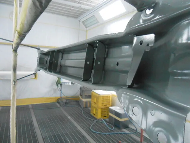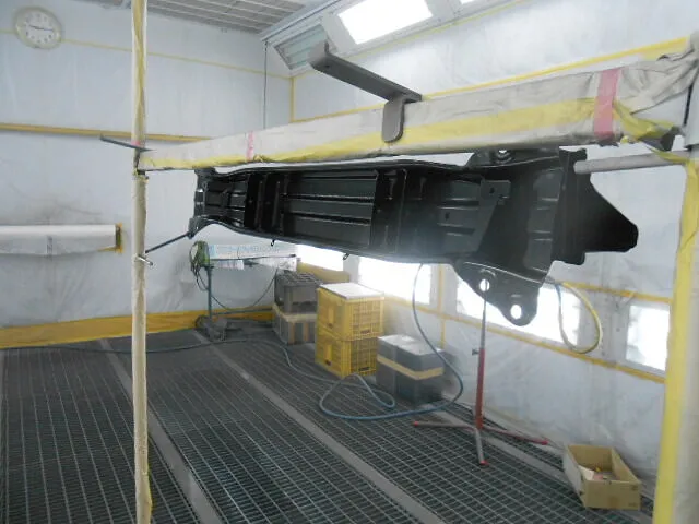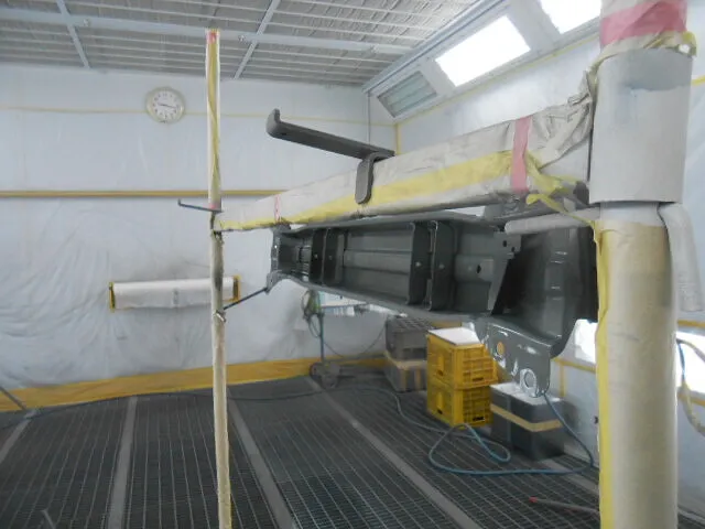 作業場に入ると、まず目に飛び込んでくるのがこの塗装ブースの光景です。