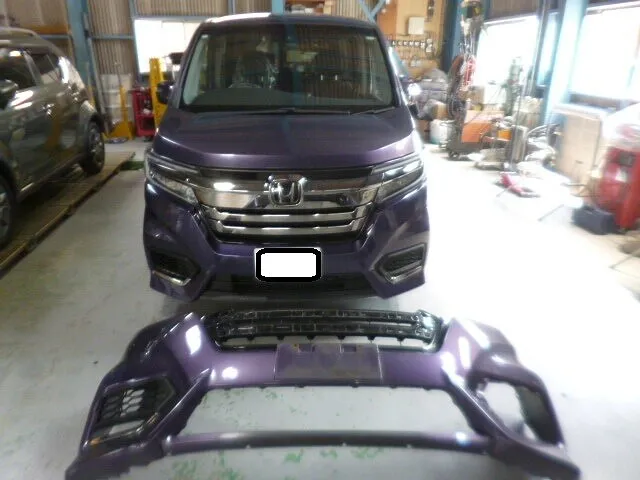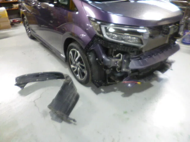 富士市 鈑金塗装 ホンダ ステップワゴン フロントバンパー交換右フロントフェンダー鈑金塗装、サスペンション修理