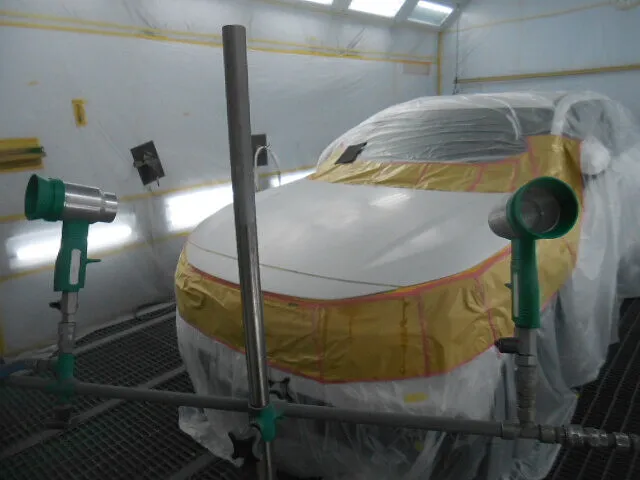 塗装ース内はるく清潔、スタッフ同士も声を掛け合いなが進行しますので、初めての方でも安心です。