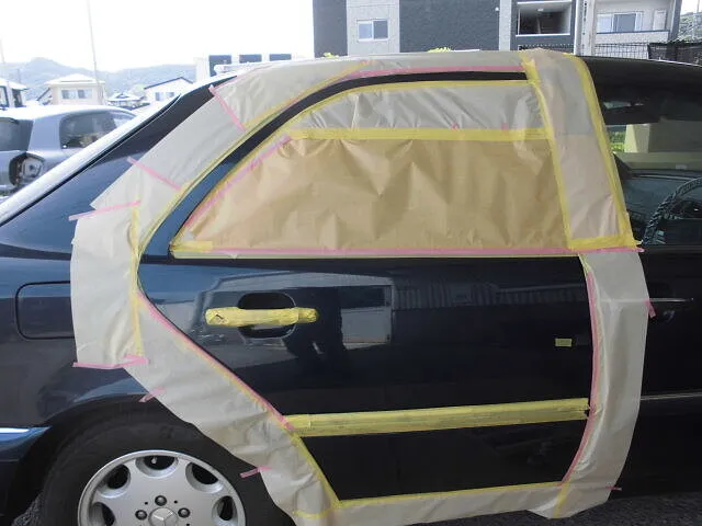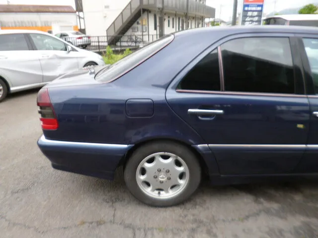 富士市 富士市 鈑金塗装 ベンツC240 右リヤドア、トランクキズ塗装修理 望月塗装工業所